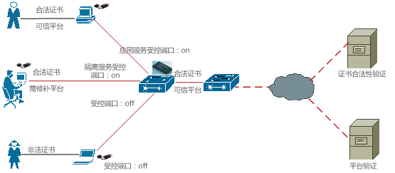 TCA(Trusted Connect Architecture)是西电捷通自主推出的一套三元(访问请求者、访问控制器、策略管理者)三层(完整性度量层、可信平台评估层、网络访问控制层)的可信网络连接架构,通过基于身份鉴别、平台鉴别来实现基于端口的访问控制。