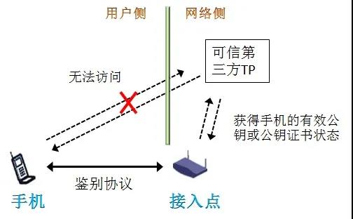 在终端尝试接入网络的场景下,终端无法从网络中的可信第三方TP获得接入点的凭证,因为接入控制功能要求终端完成鉴别之后才能访问网络。